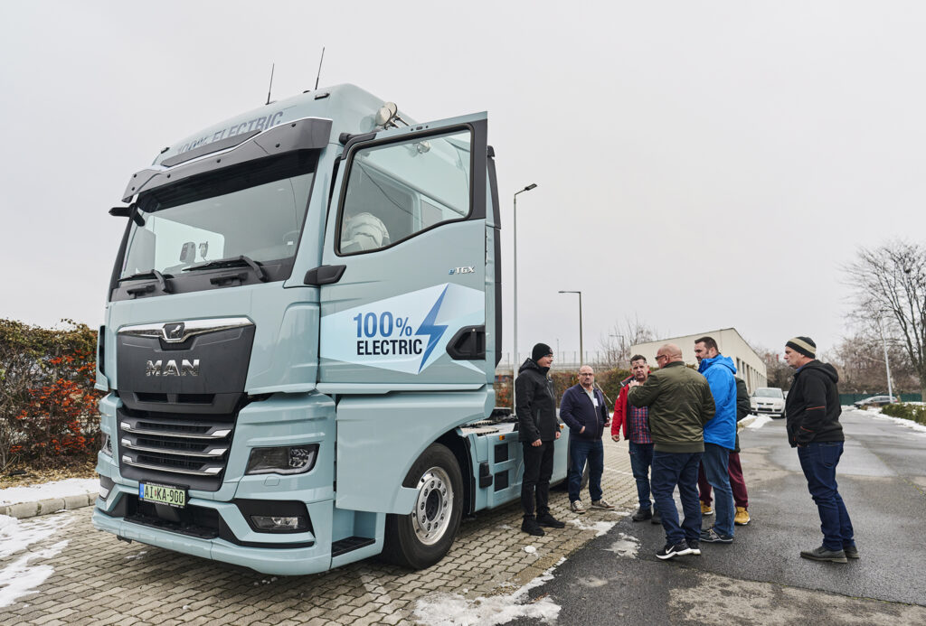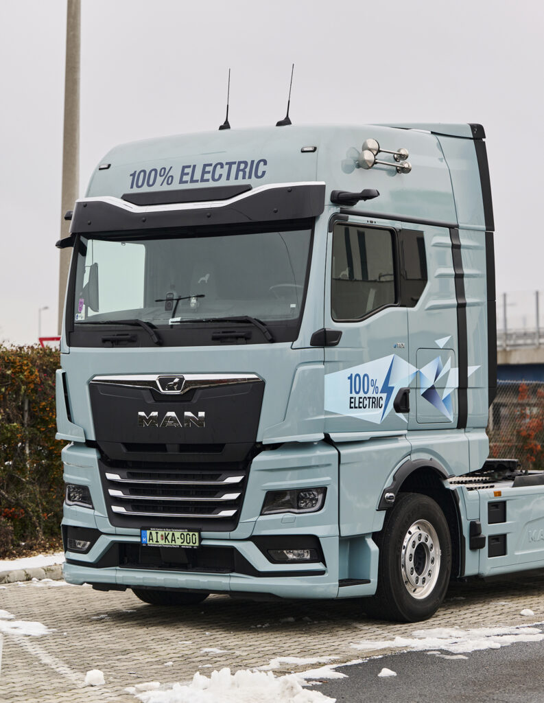 Az elektromobilitási képzés középpontjában az MAN eTGX állt – egy teljesen elektromos teherautó, amelyet kifejezetten igényes, nehéz és hosszú távú szállítási feladatokra fejlesztettek ki. A választott felszereltségtől függően a jármű egy feltöltéssel akár 500 kilométer megtételére is képes, ami a hosszabb fuvarfeladatok során is versenyképes alternatívát jelent. Mindezt egy rugalmasan bővíthető akkumulátorrendszer biztosítja, amelynek maximális energiatároló kapacitása elérheti a 480 kWh-t.